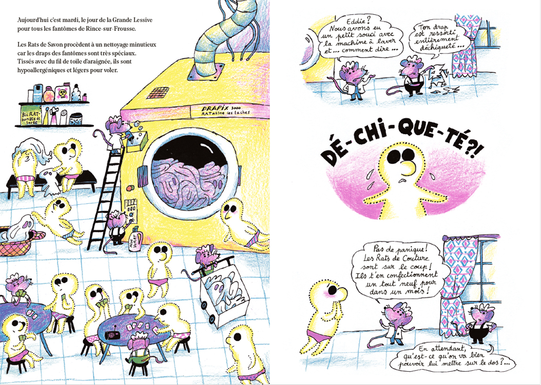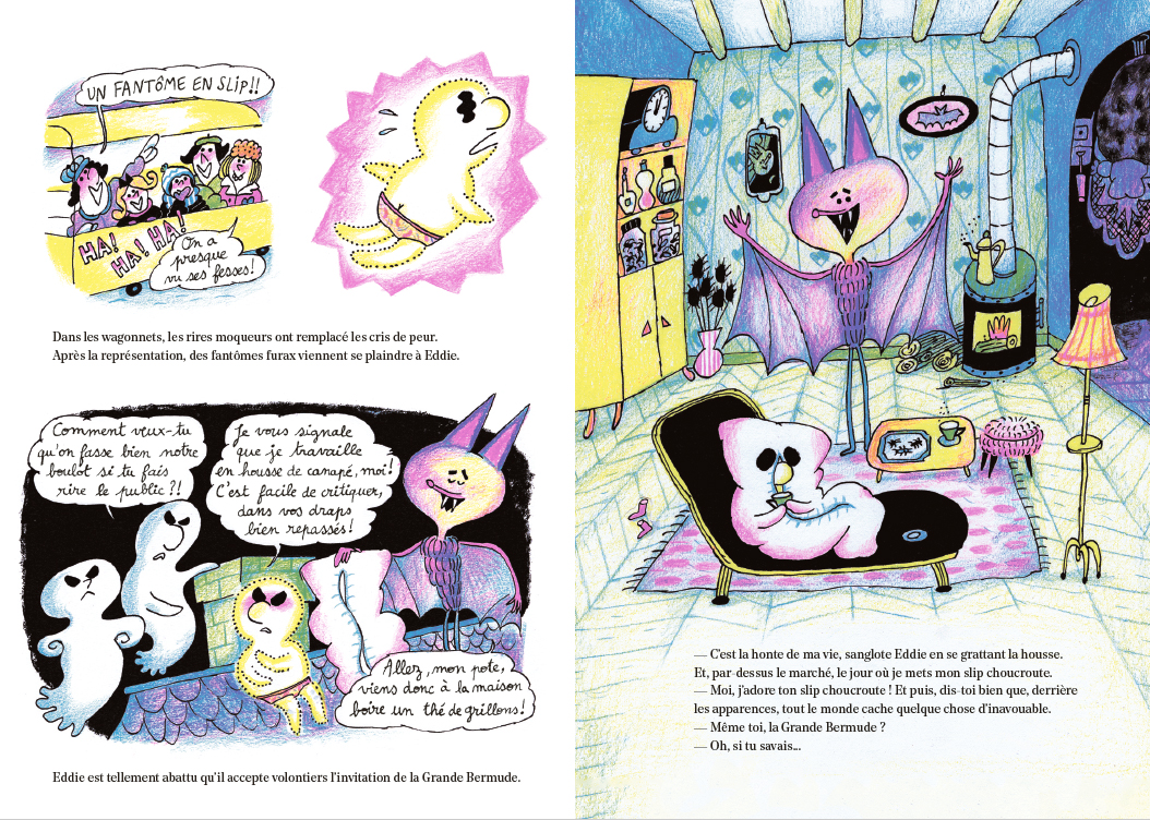 À Rince-sur-Frousse vit Eddie, un fantôme qui prend son métier très à cœur. Il est meneur d’un show horrifique avec Bermude, la chauve-souris géante, en compagnie de qui il terrorise tous les soirs des hordes de touristes qui se pressent pour les voir. Mais ce mardi, jour de grande lessive, catastrophe ! Son drap de fantôme ressort complètement déchiqueté de la machine à laver précisément le jour où il a mis son slip imprimé choucroute…